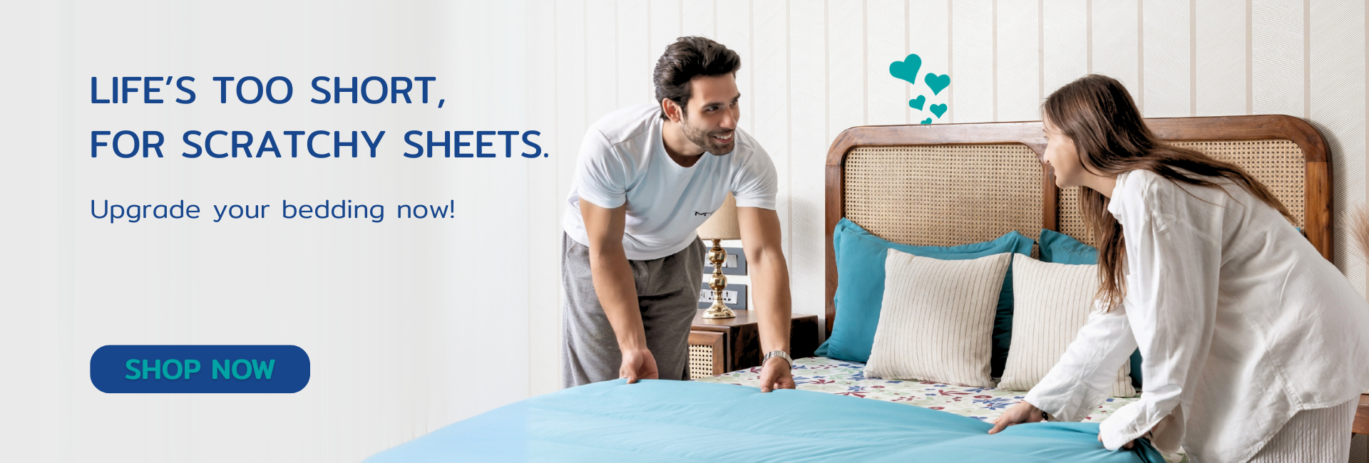 Cotton Double Flat Bedsheet with 2 Pillow Covers - Serene Cascade